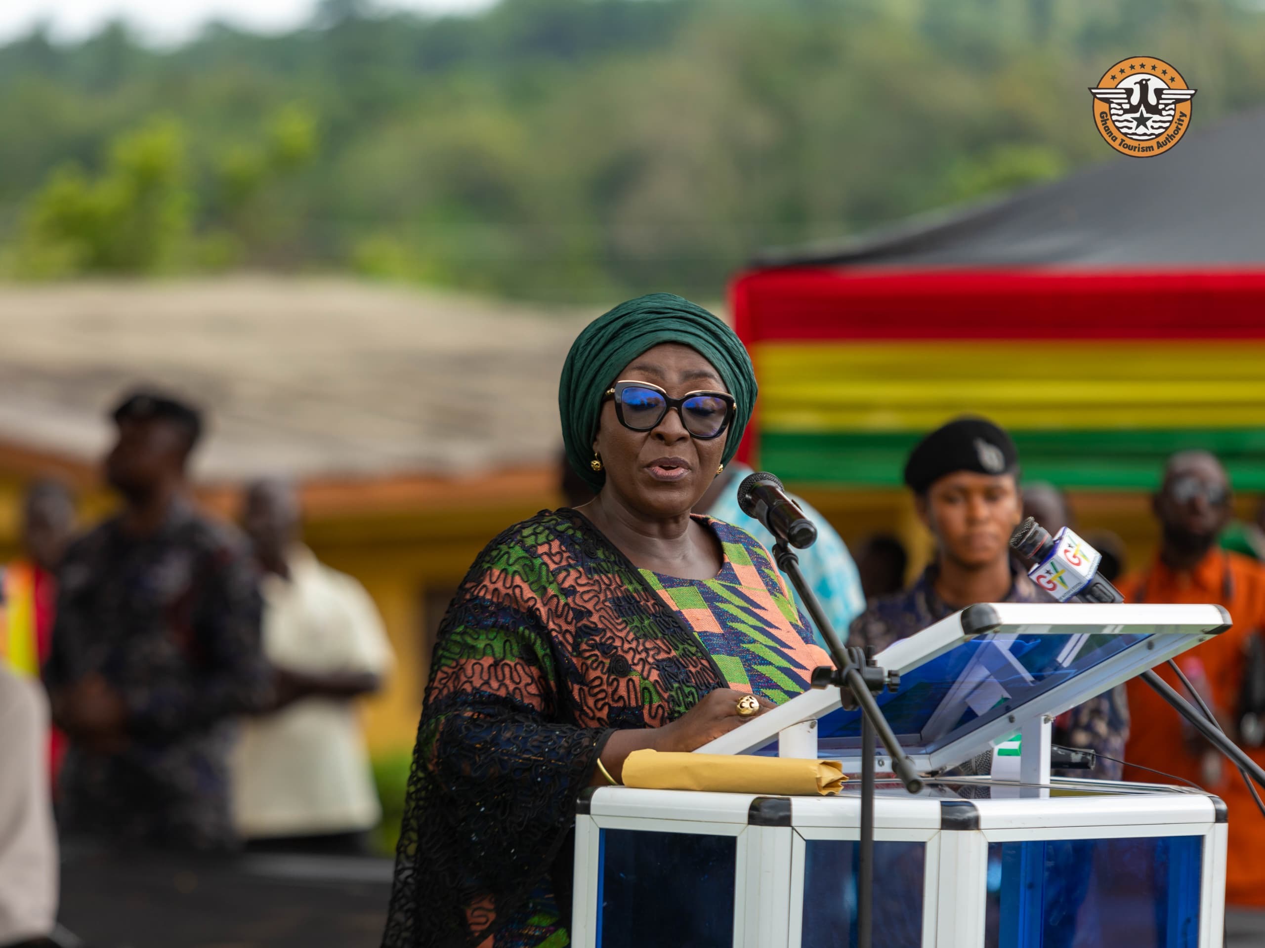 * *GTA CEO Remarks*: Madam Maame Efua Houadjeto, CEO of the Ghana Tourism Authority, reaffirmed the country’s role in promoting heritage tourism as a platform for truth-telling and reconciliation, stressing that “Artistic activism must lead the way in healing our wounds and restoring our dignity.”